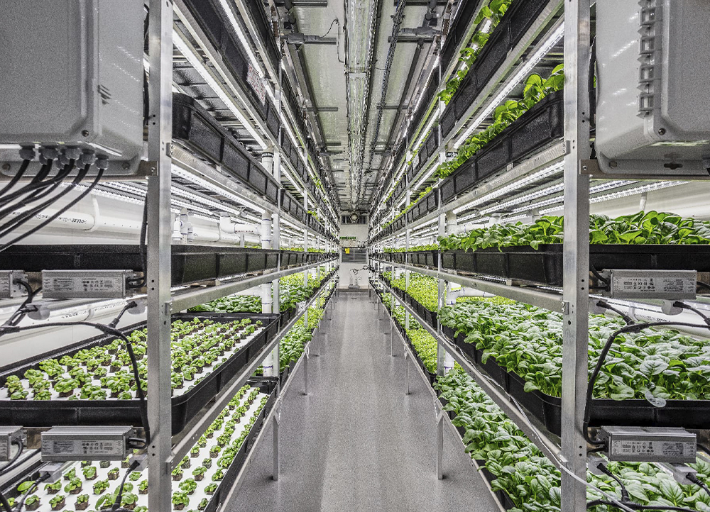 モジュール式栽培システムと最先端の環境制御技術を完備し、年間を通じて高品質な作物を生産。